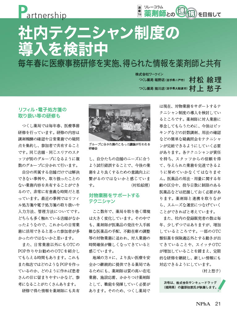 日本保険薬局協会様が発刊されている会報誌「NPhA」に当社医療事務についての記事を掲載して頂きました。